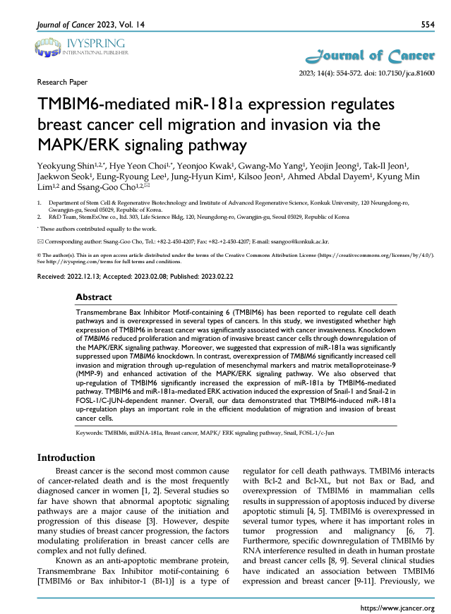 TMBIM6-mediated miR-181a expression regulates breast cancer cell migra…