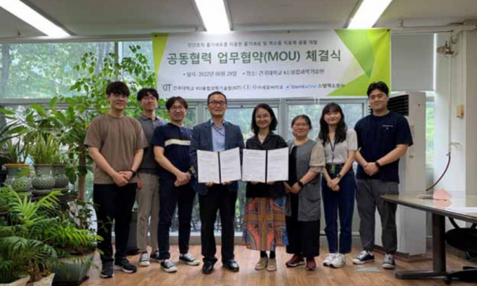이날 협약으로 KU융합과학기술원에서 나온 연구결과는 스템엑소원, 세포바이오의 난치성 염증 질환 치료제 개발·제조에 활용될 예정이다.